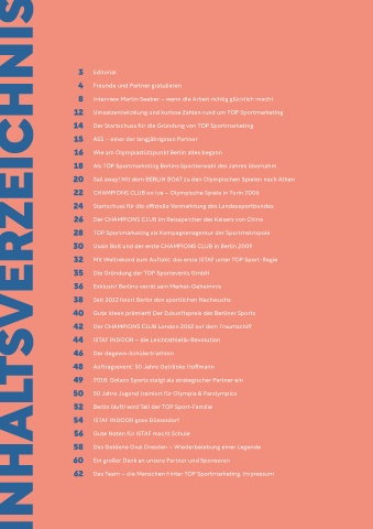 62 Das Team – die Menschen hinter TOP Sportmarketing, Impressum Ein besonderes Jubiläum, das wir Leichtathletik-Leuchttürme ISTAF Team von TOP Sportmarketing Berlin